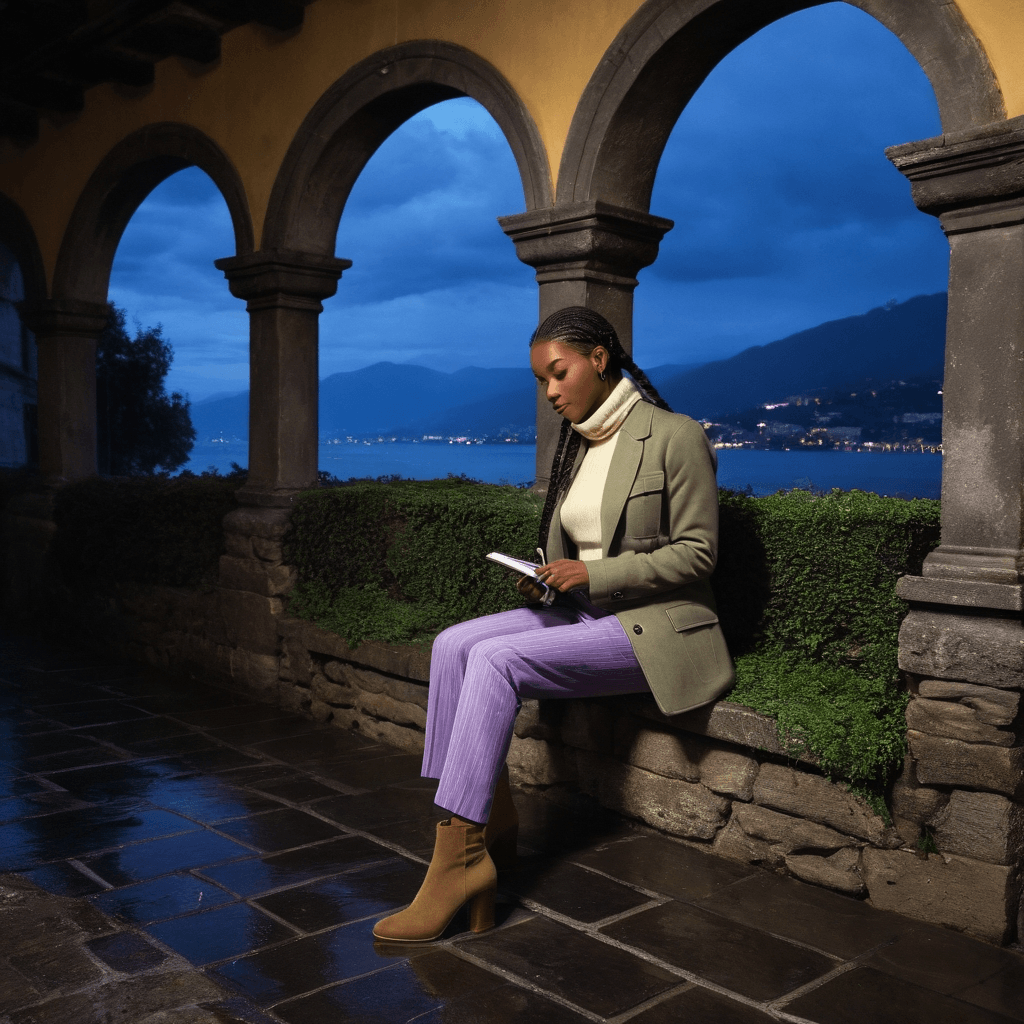 Bunmira doesn’t create perfumes—she translates love stories into scent, one destination wedding at a time. Perched above Lake Como in a Bellagio hillside villa turned studio-lab, she distills emotions into elixirs: a bride’s nervous joy captured in green cardamom and damp stone; the groom’s quiet awe rendered in sun-warmed cedar and olive leaf. But her real obsession is invisible—she crafts a secret scent for every couple, never delivered, only worn by herself on nights she walks alone through cobbled alleys where lovers press against walls and argue in hushed Italian. She believes true romance isn’t declared—it’s discovered in the almost-touch, the breath before confession.Her heart belongs to no one officially, though it stumbles often—on the ferryman who brings her vintage citrus from Sorrento without speaking, on the jazz pianist who plays lo-fi covers at the lakeside bar until 3am. Their connection lives in voice notes exchanged between subway stops when neither can sleep: *I passed your favorite gelato stand. The lemon smelled like that night you forgot your scarf.* Her body remembers more than her mind allows. Sexuality for Bunmira is not conquest but communion—slow undressing by candlelight after rain taps the windowpane in Morse code, skin tasting of salt from tears she didn’t know she’d shed, fingers tracing scars not to fix but to honor.She keeps a shoebox under her bed filled with polaroids: two bare feet on wet tiles after dancing in the kitchen at dawn; an empty espresso cup beside a scribbled line of poetry; a hand holding hers on a fire escape, both silhouetted against the violet skyline. These are her real masterpieces. She wears tailored streetwear softened by cashmere layers like armor and invitation at once—ready to vanish or be found.The city watches everything, and she knows it. So her grandest gesture remains unwritten: a perfume called *L’alba che non promette*, The Dawn That Doesn’t Promise. It’s built on the scent of wet stone after rain, burnt almond from street vendors at 5am, and the faintest trace of her own skin mixed with someone else’s breath—the formula for love that refuses to perform, only be.
