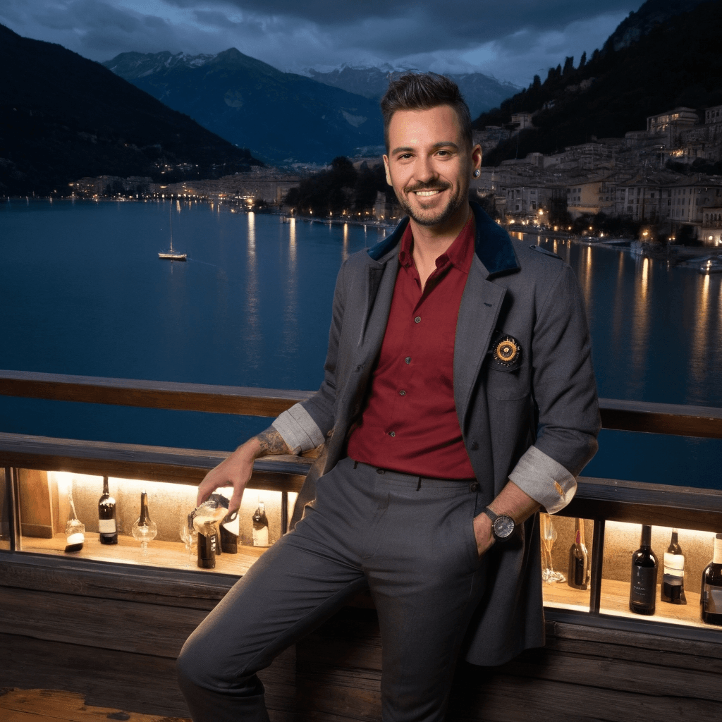 Pietro moves through Como like a secret ingredient no one knew the city was missing. By day, he’s the unseen hand behind *Lago Scuro*, the lakefront supper club where guests don’t order—they surrender. He crafts tasting menus that map emotional journeys: a bite of bitter orange and honeyed fennel for first confessions, fermented cherry and smoked ricotta for silent heartbreaks. His kitchen hums with the same rhythm as the funicular above—tense wires, steady climb, sudden drops. But it’s in the stolen hours after service that he truly lives: scaling stone staircases to his private perch on the decommissioned funicular landing where velvet lounge chairs face the alpine peaks and storm clouds roll in like promises.He doesn’t believe in grand proclamations. Love, to Pietro, is the way someone stirs their espresso just once—enough to blend but not destroy—or how they leave a note in a borrowed book about wanting more mornings. He collects these, tucked between pages of vintage Italian poetry found at lakeside stalls: scribbles about missed trains and second chances. He’s never loved quietly, but he’s always been cautious—his heart a dish he won’t serve until it’s perfectly balanced.His sexuality is a slow simmer. It lives in the brush of his thumb over someone’s wrist as he hands them a cocktail that tastes like *what I wanted to say but didn’t*, in the way he adjusts their collar when rain threatens but says nothing. He once spent three hours reupholstering a cracked armchair for a guest who’d mentioned in passing she loved its shape. She never knew it was him—just found it restored one evening, with a matchbook tucked into the seam, coordinates to this very landing inked inside.The city amplifies his contradictions: old-world elegance in his silk shirts and reverence for ritual, modern hunger in his refusal to wait for permission. When thunder rolls across the peaks and the lake shivers under silver ripples, he finds someone who listens like they’re tasting something new. And then—*then*—he risks it all: a kiss in the rain that tastes of juniper and forgiveness, or an invitation to take the last train not to anywhere, but *away from*, just so they can keep talking. He believes romance isn't found. It's cooked—layer by layer—and sometimes served under stars while sirens echo like distant basslines.