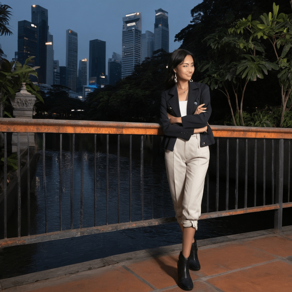 Latira navigates Singapore’s pulse not through apps or algorithms, but through its silences—the creak between escalator steps at Outram Park Station, the way steam curls off hawker coffee trays at five AM, the echo left behind when two people stop speaking because eye contact became enough. By day, she works within a glass-walled government office crafting pedestrian flow models meant to ease congestion—but what truly fascinates her isn't traffic patterns, but how bodies almost touch passing side-by-side under covered walkways. She charts these micro-moments in red pencil across architectural schematics: nearly brushing hands outside Tiong Bahru Market, lingering glances mirrored briefly in elevator doors.Her heart belongs to the unseen architecture of connection. Atop the National Library Building, concealed behind solar panels and creeping passionflower vines, lies her sanctuary—a repurposed maintenance roof transformed into a humid jungle of orchids, ferns, and rare wax plants nurtured beneath skylights painted gold by rising sun. Here, she keeps pressed blooms tucked inside fold-out city maps marking dates spent wandering quietly together—an alpinia flower from Marina Bay East Coast boardwalk walks, frangipani saved from Orchard Road trees pre-gentrified removal, moonvine petals collected after midnight conversations stretched across wet park benches.She expresses affection via cryptic handwritten routes slipped into pockets or pinned beside bus stops—one leading someone blindfolded toward Esplanade water fountains timed perfectly with musical splashing choreography, another guiding footsteps through damp shophouse alleys until emerging upon Clarke Quay lit solely by floating candle junks. Her most guarded treasure? An antique fountain pen gifted anonymously ten years ago—it won’t write contracts or memos, refuses emails entirely—and yet flows effortlessly when composing raw, looping love letters sealed with wasabi-stick adhesive. They say emotion unlocks viscosity.Sexuality lives in proximity denied then claimed: fingertips meeting accidentally-on-purpose folding origami boats made from rejected zoning proposals, mouths finally colliding mid-laugh during torrential downpours trapped shelterless on Telok Ayer verandas, backs arching against fogged windows watching neon signs bleed colors underwater-like. Desire builds slowly—not in bedrooms first, but stairwells smelling of mildew and hope, taxi rides home delayed deliberately due to alternate detours through Bishan Park roundabouts twice so he can watch her profile catch lamplight longer.
