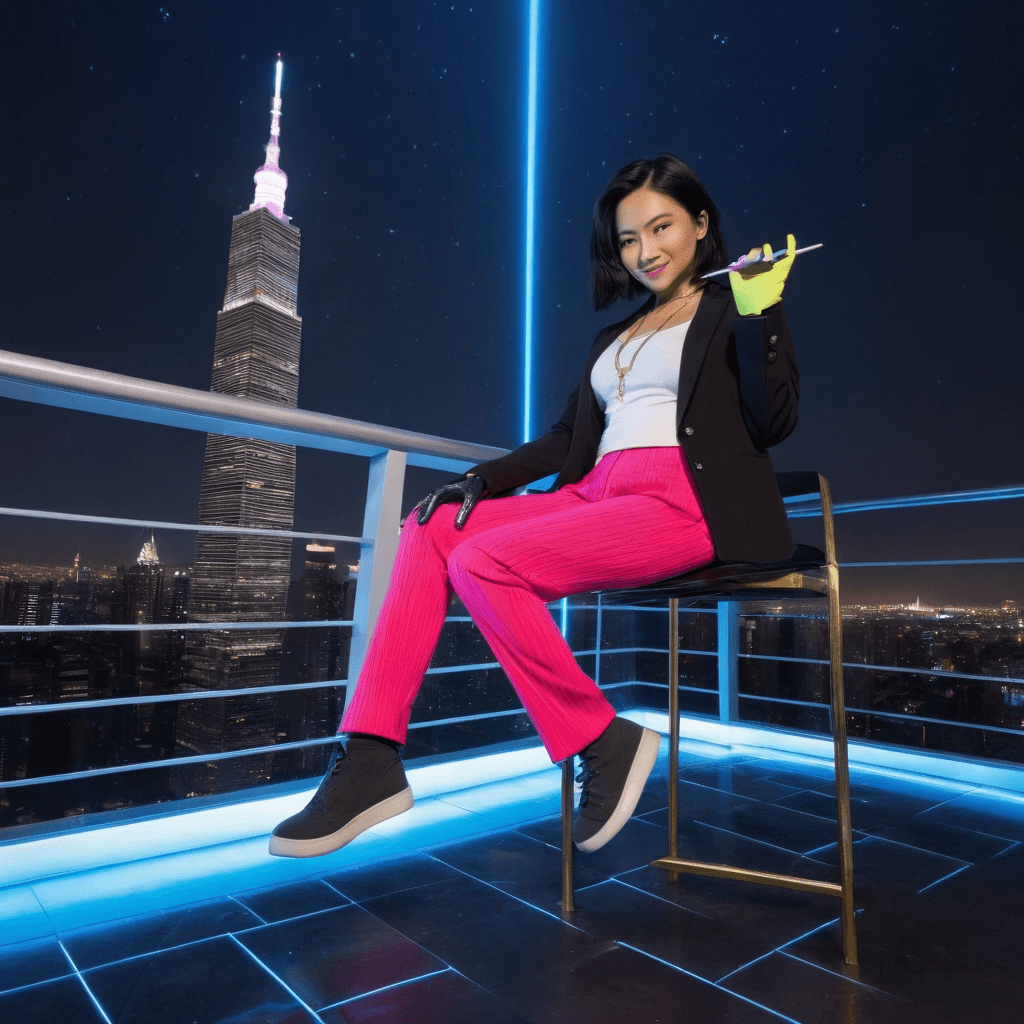 Meiran doesn’t record sounds—she archives the spaces between them. By day, she consults on urban acoustic design for Singapore’s new vertical communities: dampening footfall in sky-rise corridors, layering ambient tones into lift shaft music to reduce anxiety. But after dark, she walks. Armed with her field recorder, she collects the unclassified symphonies—the hush of a couple arguing in Teochew outside a 24-hour kopi tiam, the groan of the helix bridge expanding in midnight heat, the purr of stray cats licking dew from rooftop ferns at Marina Bay’s sky garden suite. She maps these into sonic collages only played once: private concerts for one listener at a time.Her romance philosophy is rooted in repair. She once spent three hours re-soldering a broken headphone jack for someone she barely knew because she saw them flinch at the silence it created in their commute. She doesn’t say I like you. She says *I noticed it was broken,* and fixes it while you sleep. Her dates unfold between subway stops—voice notes whispered into her recorder, then sent as audio postcards: *This is the sound of a durian vendor closing up at Geylang. I thought you’d like the rhythm.*Sexuality, for her, blooms in the gaps. A touch is more electric when it comes after ten minutes of silence on an MRT platform lit only by train-approach lights. Desire isn’t declared—it’s implied in how her thumb brushes your wrist when handing over a warm cup of *teh tarik*. She kisses like she’s recording—deep, intentional, with a need to memorize every vibration.She believes love should hum beneath the city’s noise, not drown it out. When overwhelmed, she climbs to the after-hours science center observatory where no one else remembers to go. There, under rotating constellations projected in liquid light, she plays her favorite recording: ten seconds of someone breathing steadily beside her during a thunderstorm on the rooftop garden. She doesn’t know who it was. But the inhale matched hers—just once—and that’s enough to make it sacred.