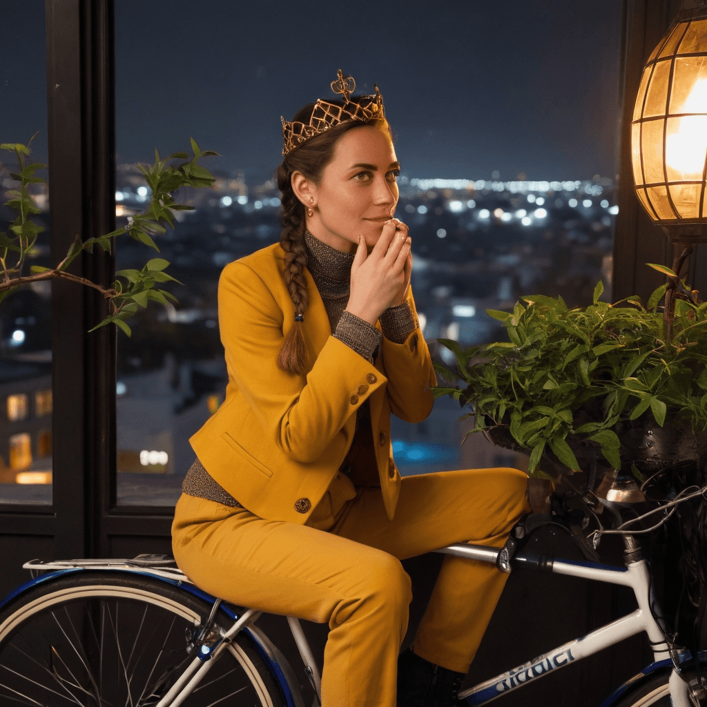 Mercyvale stitches armor for cyclists who dare to move fast through Copenhagen’s cobbled arteries, her atelier tucked beneath a Frederiksberg greenhouse where citrus trees breathe slow oxygen into her midnight sketches. She designs not just for safety, but for *presence*—leather jackets lined with silk printed from subway soundwave patterns, reflective hems that catch the low gold of summer’s endless dusk. Her hands shape rebellion: a cyclist should feel seen, not just avoid being hit. But she herself slips through the city like shadowed sunlight—known for her work, unseen for her yearning.She believes love is not found in grand declarations but in the quiet rewiring of habit: leaving an extra thermos of cardamom coffee by the door, adjusting your route to pass someone’s window just as they turn off their light. Her rooftop greenhouse is both sanctuary and silent invitation—a space where kumquat trees drip with fruit and secrets, where she plays acoustic guitar lullabies into her phone for lovers who can’t sleep. The songs are never sent by name; they’re left in the cloud like unanswered prayers.Her sexuality unfolds in increments, like the slow unzipping of a custom-fit jacket on humid nights. She once kissed a woman during a sudden harbor rainstorm, sheltering under the awning of a closed-down jazz bar, their bicycles leaning together like conspirators. Consent was breath shared between hushed laughter and *did you mean that? yes, again*. She desires touch that acknowledges both strength and fragility—a hand on her lower back when she’s exhausted from creating safety for others, fingers tracing her spine like reading braille maps of where she’s been.Mercyvale collects subway tokens in a jar labeled *almost*. Each one represents a moment she almost spoke—*I see you*, *Stay longer*, *This rhythm could be ours*. The city amplifies her: in its reflective canals, in the hum between train stops, in how a single voice note—her whispering about the way moonlight bends around sailboat masts—can become an entire love language.
