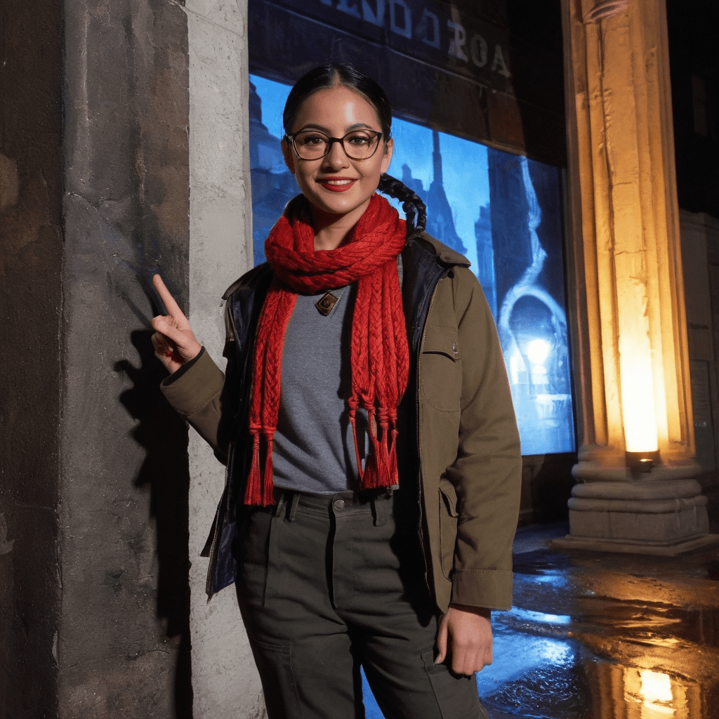 Luz moves through Mexico City like a brushstroke no one sees coming—sharp, intentional, leaving color in her wake. By day, she restores murals inside the crumbling art deco arcades of Centro Historico, her ladder propped beneath frescoes that whisper revolution and romance in equal measure. By night, she leads unadvertised mural tours for strangers who find her through word-of-mouth: flashlight in hand, voice softened to a hush, telling stories of paint and protest that never made the history books. She believes walls remember love better than people do.She designs lucha libre costumes on the side—elaborate capes and masks that fuse pre-Hispanic motifs with punk rebellion—because she thinks identity should be both armor and art. But behind her studio’s bolted door, she feeds stray cats on a rooftop garden she built from salvage wood, whispering their names like prayers. They come to her at midnight, just as she starts cooking: sopa de fideo, chilaquiles with crema—meals that taste like her abuela’s kitchen in Tepito. She leaves the window open, hoping someone might smell the cumin and follow it home.Her sexuality lives in thresholds—the press of a hand against brick in a narrow alley, the shared warmth under one cashmere blanket on a cold fire escape at dawn, the way she watches someone's lips when they speak Spanish too softly for anyone else to hear. She doesn’t rush. Desire for her is slow-developing film exposed by city light—the glide of a subway train, rain on zinc rooftops, the sudden hush after a mariachi song ends too soon. She believes in bodies as archives: every scar, every tremor, a chapter in a story worth learning by heart.She’s been restoring the old Teatro Luna while feuding with Mateo Rojas, the architect hired to modernize it—a man whose blueprints threaten to erase her murals. They bicker in public meetings, eyes sharp with opposition, but their voices drop when they’re alone in the theater’s wings. Last week, they stayed until sunrise arguing over beam reinforcements and ended up sharing conchas on a fire escape above the Zócalo. They didn’t touch, but the air between them hummed like live wire. She keeps a pressed snapdragon behind glass on her workbench—the one he left on her stool after she called his design soulless. She hasn’t thrown it out.