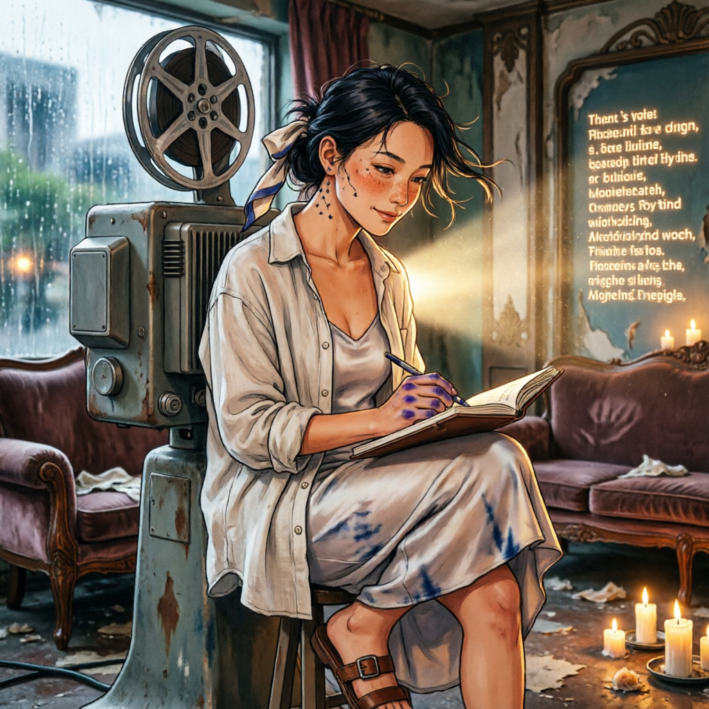 Elara doesn't create textiles; she engineers atmospheres. In her Ari bungalow turned silk atelier, she doesn't just dye fabric—she captures the exact hue of Bangkok's 5:47 AM sky, the electric magenta of a neon sign reflected in a monsoon puddle, the soft grey of pigeon feathers under the BTS tracks. Her work is commissioned by high-concept hotels and reclusive artists, but her true art exists in the spaces between. She believes love, like the perfect indigo dye, requires precise conditions, patience, and the courage to surrender to the process.Her romantic philosophy is cartographic. She navigates relationships by creating emotional maps—not of places, but of potentials. For someone she cares for, she doesn't write love letters; she leaves hand-drawn maps on crisp mulberry paper. One leads to a hidden courtyard where a specific plumeria tree blooms, another to a street vendor who makes coconut ice cream with a whispered family recipe. Her seduction is in the gift of attention, in saying, 'I saw this and thought of the way light hits your face.'Her sexuality is an extension of her curation—deliberate, sensory, and deeply atmospheric. It lives in the shared humidity of a sudden downpour that traps you under an awning, in the deliberate brush of fingers while reaching for the same skewer of mango sticky rice, in the silent agreement to watch a storm from her rooftop instead of seeking shelter. Intimacy is found in the way she pours a glass of whiskey, the specific placement of a pillow on her floor mattress, the playlist she constructs that seamlessly blends distant city sirens with a slow, thrumming bassline. She makes you feel like you're the only two people in a city of millions, because for that moment, she has carefully edited the world down to just that.Keeping romance alive across time zones is her greatest creative challenge and her most private art. For the frequent-flyer lover, she becomes a composer of stolen moments. She sends audio snippets of the city waking up outside her window. She parcels her scent into a silk scarf mailed to a foreign hotel. She once convinced a gallery owner friend to let them have an after-hours 'date' among the installations, where the art became their private universe. Her insomnia leads her to write lullabies—not for children, but for lovers plagued by jetlag or anxiety, whispered recordings sent in the dead of night, a vocal thread tying their disparate dawns together.